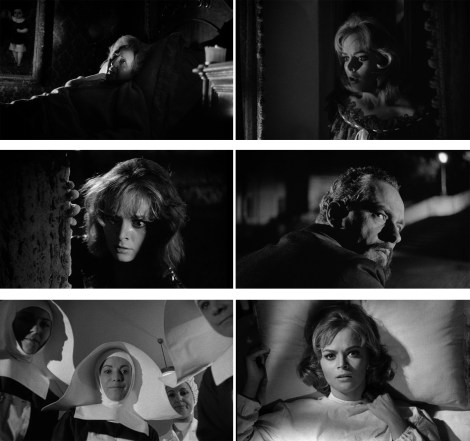 A geometria dos enquadramentos (que é trabalhada, quase sempre, a partir da centralização dos corpos ou dos rostos das personagens no quadro) e a iluminação rigorosa do filme, último de Bava filmado em preto e branco, localizam seu interesse não apenas sobre aquilo que rege a ação dramática, mas sobre os olhares, expressões e os campos de visibilidade. Esse gesto, que coaduna com a construção de contracampos diametralmente opostos e com a operação da própria câmera assumindo momentaneamente o ponto de vista objetivo (e não subjetivo) de um personagem ou de um observador distante, além de colocar em jogo os dois lados da cena, parece convocar também certa espectatorialidade do cinema. Olhos Diabólicos interessa-se, assim, pelas dinâmicas do olhar não apenas de quem ocupa a cena, mas também de quem se vê diante dela.