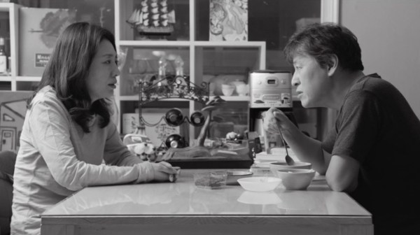 O longa explora essa ambiguidade, que não é particular a Bong-wan, mas a muitos dos que se auto-proclamam “homens contemporâneos”. Em sua relação com as mulheres, ele não quer “fazê-las sofrer”, mas faz. A primeira delas, sua esposa, Song Hae-joo (Jo Yoon-hee), o interpela no café da manhã, preocupada com as mudanças de hábito do marido – perdeu peso, tem saído muito de madrugada – cujo silêncio por si só já incomoda. Yoon-hee vai se alterando, visivelmente perturbada, até que chega à conclusão de que ele tem uma amante, afirmação que Bong-wan recebe com pequenas gargalhadas irônicas, em tom de superioridade que, inconscientemente, machucam – e muito – a companheira. São risadas que a ridicularizam. Ainda assim, ele é incapaz de responder. Silêncio. Um silêncio que incomoda tanto quanto as suas mastigadas e sugadas grotescas e exageradas, que parecem um “desprezo-extra” pelo sofrimento da esposa. Nessa sequência, que aparenta representar um mero ciúme cotidiano, O Dia Depois explora as pequenas violências que esse homem comete, já que na próxima cena – que surge após a primeira e importante elipse do filme – vemos o editor bêbado (na noite anterior ou na mesma noite?) carregado pela ex-funcionária Lee Chang-sook (Kim Sae-byeok), com quem manteve uma relação extraconjugal, confirmando a teoria da esposa.