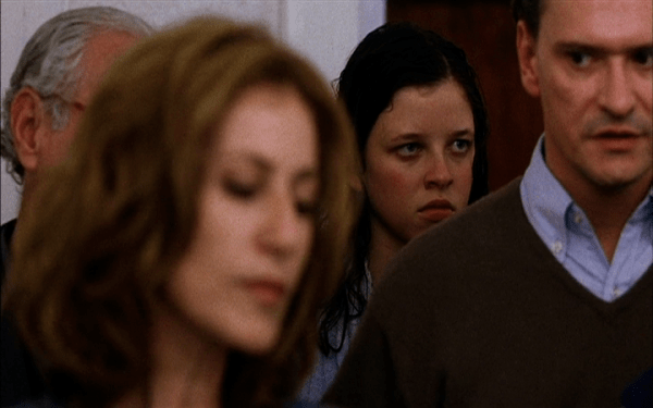 Logo depois, vem o contato de Jano com uma adolescente, que, em seguida, descobrimos ser filha de Mirta. A imagem fechada dá a certeza do bolinar que a personagem não tem – ou tem, mas que talvez queira negar. O abuso, a infração, acontece com quinze minutos de projeção e vai reverberar adiante em várias situações, incluindo uma das cenas mais emblemáticas do filme. Nela, a confissão do doutor Jano diz respeito à filha de Mirta, mas a mãe nem desconfia, tem certeza que ele fala dela, não de sua prole. Aos ouvidos de quem desconhece o crime cometido pelo médico, as palavras soam como uma declaração amorosa e libidinosa, provavelmente tornando-se um ápice de sofisticação narrativa no filme. Seu equivalente visual é o plano em que, já próximo ao final, temos o médico e as duas moças, com foco principal na vítima-mor, a filha. Entretanto, se Martel joga com o que nós sabemos e a personagem não sabe, ela também joga com o que as personagens sabem e nós sabemos.