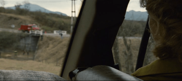 Em outro instante, em termos de conceito, temos uma mesma situação, mas com efeito diferente. Enquanto vive um dilema, após chorar sozinha no banheiro e ter admitido, numa suposição, “matei alguém na estrada, parece que atropelei alguém”, Verónica volta à rodovia. O canal ao lado da estrada ficou entupido, por causa de um cachorro ou uma pessoa. “É um cachorro”, ela escuta e se tranquiliza. Então, o que faz a câmera? Acompanha a protagonista, mais uma vez sem mostrar o que ela vê, mas também revelando muito pouco de sua presença física. Há quase um desligamento, simultâneo, da personagem e da história. Não vemos quem vê e também não observamos o que ela vê. Sendo assim, é possível que o cotidiano permaneça tão extraordinário quanto antes?