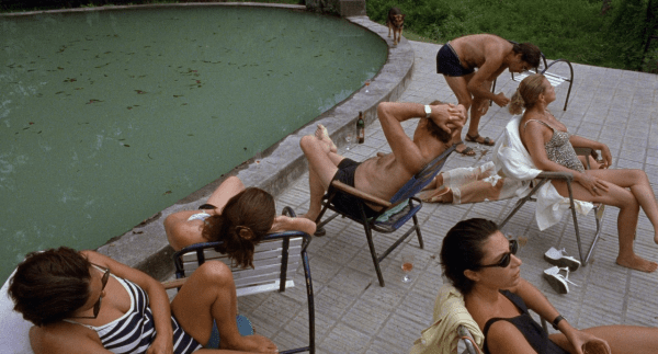 Na cena da piscina, a protagonista é quem cai, mas o que vemos é o descaso de cada um de seus próximos, num plano que usa o plongée, o mergulho, com exatidão cirúrgica. Filma-se com um plano e poucos segundos o que a maioria dos cineastas, provavelmente, faria em muitas cenas. Não sei se falamos o suficiente do poder de síntese de Lucrecia Martel.