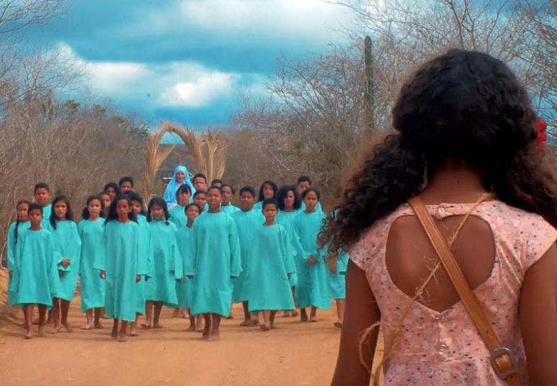 No sertão nordestino, andamos junto com Rosa (Kiarah Rocha), criança pobre que foge de casa à procura de Nossa Senhora Imaculada, com o intuito de pedir à Santa que traga água ao seu povo. Sua jornada é situada entre a realidade, o pesadelo e o sonho. Mas ao contrário da Dorothy de O Mágico de Oz (1939), não existe amizade que possa lhe dar abrigo. Na melhor sequência do filme, isso fica bem claro. A menina recebe carona de um coronel (Rogério Leandro), que se aproveita dela e tenta torná-la cativa em sua fazenda. A ameaça de abuso sexual é filmada com bastante argutez. Sem nunca mostrar o rosto do coronel, vemos apenas fragmentos monstruosos de seu corpo e as reações angustiadas de Rosa. O mal, desse modo, é uma espécie de encarnação demoníaca, sem escrúpulos. Guardadas as devidas proporções, é como a imagem de horror de Robert Mitchum em O Mensageiro do Diabo (1955), entretanto sem face. Mas em Rosa Tirana o mal não tem rosto, ele se generaliza sertão afora e toma conta do solo árido por onde se pisa.