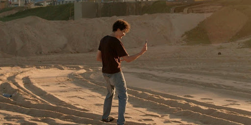 “O coach é presente e futuro”, diz sua orientadora vocacional. O passado precisa ficar pra trás. Entretanto, o filme brinca com essa confusão temporal do personagem, permitindo que passado, presente e futuro se cruzem e façam de seu destino uma areia movediça. Uma sequência ilustra bem essa estrutura. Enganado numa corrida de uber, Joder tenta constranger uma passageira no aeroporto, mas não a encontra. Em seguida, à beira da praia, faz um vídeo em primeira pessoa contando sua frustração. O vídeo viraliza, porém ele toma um enquadro de um amigo, que alerta que nem pro fracasso ele tem vocação. Tal sequência é a arte final de um desenho que se esboça do começo ao fim, algo que me agrada bastante e que corresponde às experiências e ao estado de espírito de toda uma geração. É como se o filme caminhasse um pouco, encontrasse uma pedra preciosa no meio do caminho, percebesse que era bijuteria e voltasse à primeira casa do jogo, sempre de cabeça baixa. E, ao tentar outro percurso, se deparasse com os mesmos elementos, numa rota infinita de sorte e azar.