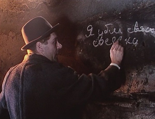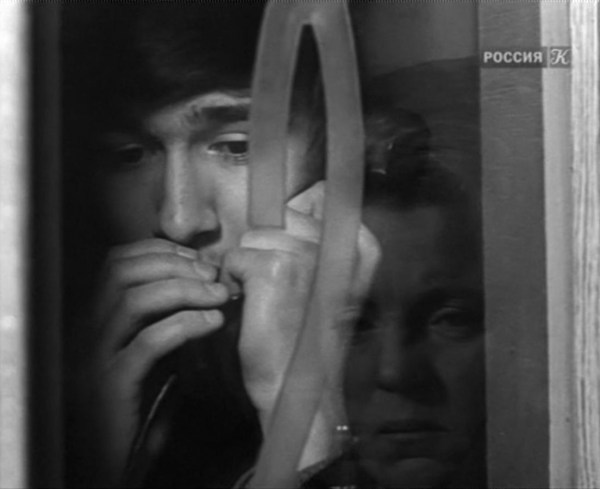 Em um salão de beleza, Valya tem seu cabelo arrumado pela cabeleireira, que conversa com outras clientes a respeito de suas vidas conjugais. Nesse momento do filme, a personagem já vive uma crise de relacionamento com o marido. Enquanto as mulheres conversam no salão, no off da banda sonora, um plano apresenta o rosto de Valya, que parece se distanciar da falação para se deixar levar por alguma memória remota. Seus olhos alcançam o espectador e a montagem concatena esse plano de olhar penetrante com outro nada convencional – o que parece ser a subjetiva de uma panela com água borbulhante que, em contra-plongée, mostra Valya e Maxim a lançar lagostas vivas para dentro do recipiente. A conversa prosaica a respeito de como se deve preparar o crustáceo adquire um tom suprarreal e transforma a memória em devaneio, especialmente pelo modo de composição da imagem, mas também pelo agitar da água a cada vez que uma lagosta é jogada para o interior da panela.